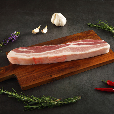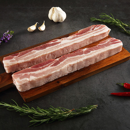 香草豬腹脇肉的特性:位於背脊部下方,常見的五花肉、腩排皆來自此部位。