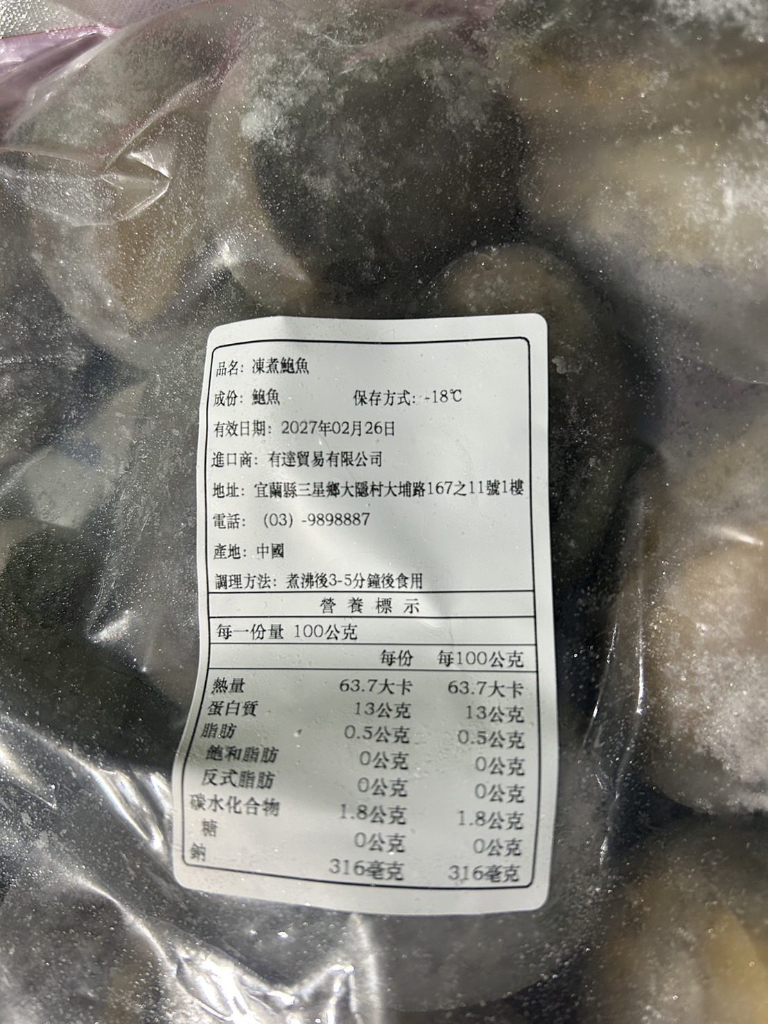 帶殼熟凍鮑魚