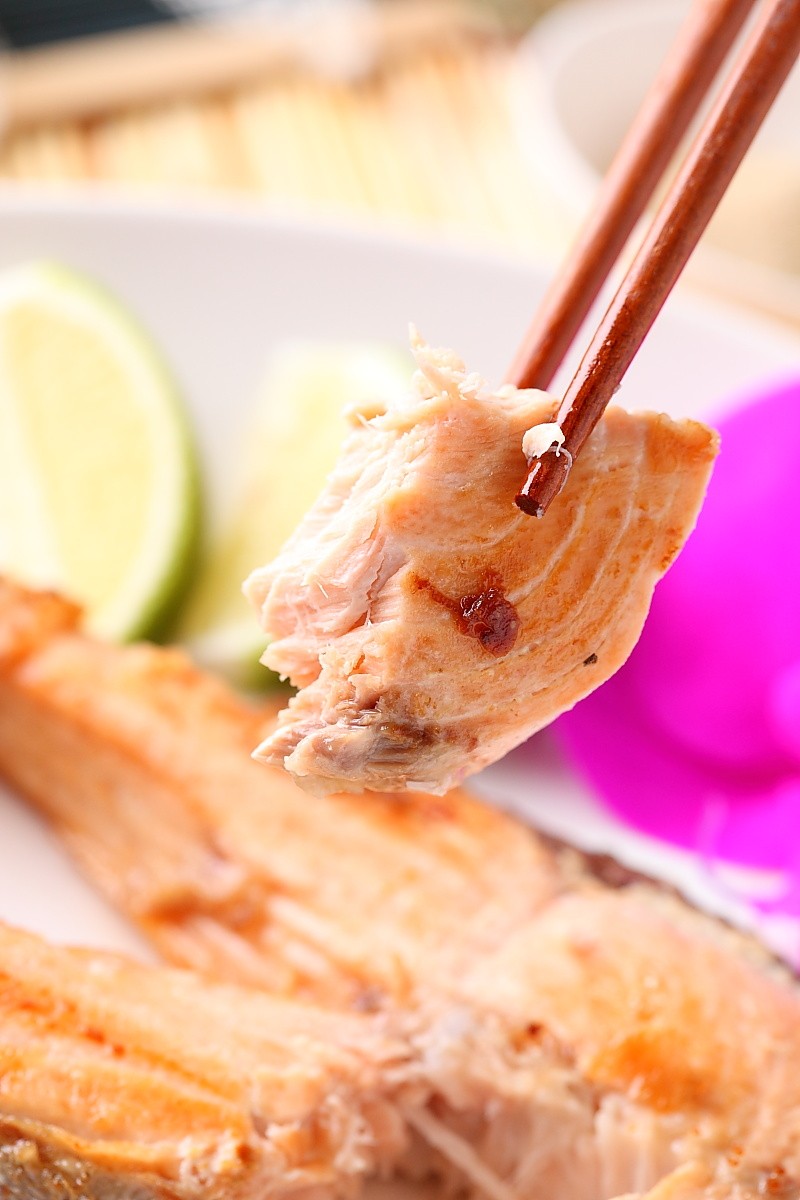 好的鮭魚 有豐富油脂 不需額外加油哦