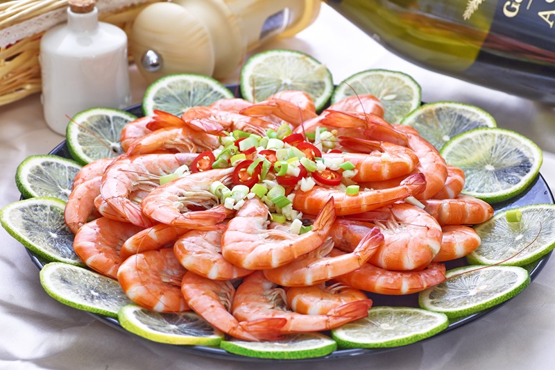 馬來西亞頂級活煮白蝦 號稱蝦中之凰,解凍即食,產於淡海區域,一年僅捕撈一次,極熱蒸熟急速冷凍冰存,是皇室御用的食材。