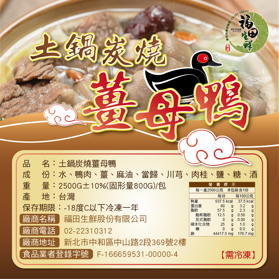 冬天到了,氣溫降低,這時候令人最想吃的美食,當然就是薑母鴨。嚴選飼養 120 天現宰土番鴨,正值青壯年的大公鴨入鍋,滋補功效及又甜又有彈性的肉質。先以黑生鐵鍋麻油老薑片爆炒鴨肉1小時。再以傳統土鍋炭燒、燜燉6小時而成,獨門中藥材的辛香料與配料調味,達到香氣、美味雙享受!入酒提味,久燉而沒有辛辣酒味,大人小孩都非常適合食用。